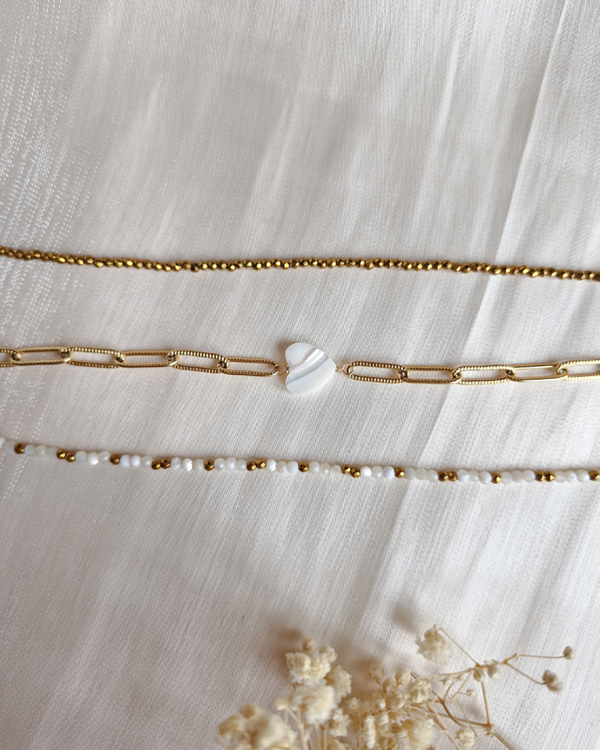 - Bracelet avec perle de nacre en forme de coeur et chaîne en acier inoxydable