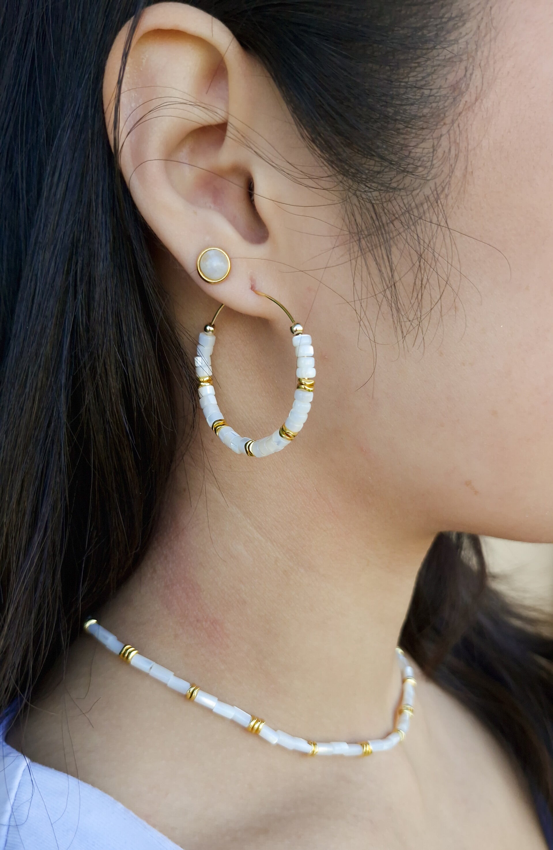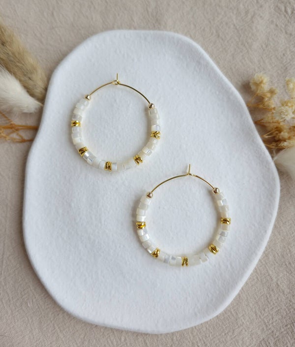 Créoles en nacre apporteront de la lumière douce et naturelle à vos tenues.